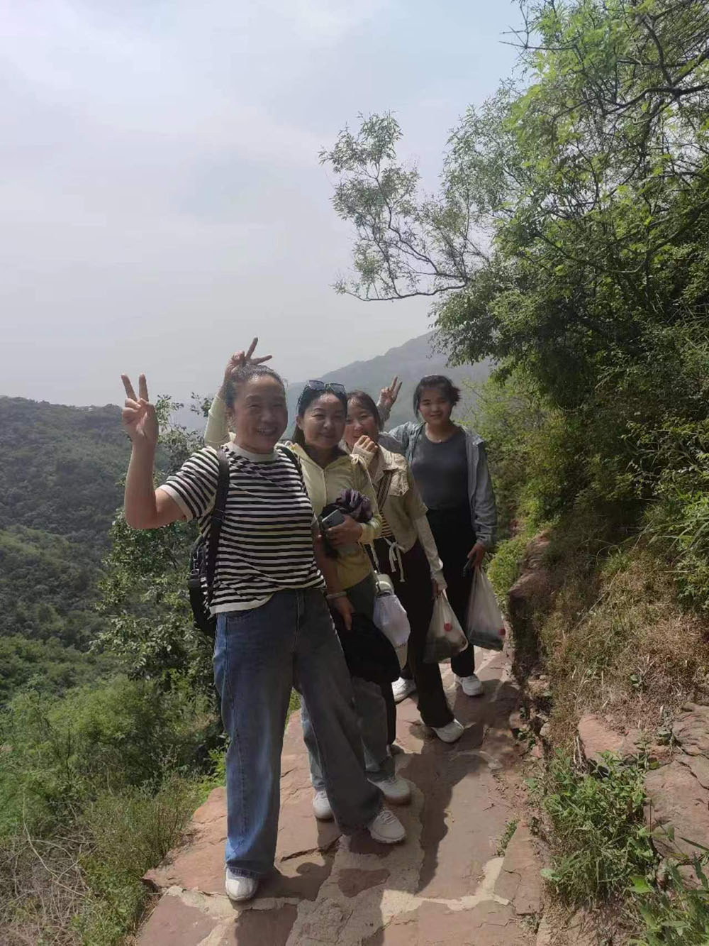 到達景區(qū)后,大家乘坐景區(qū)內(nèi)小火車來到趙匡胤千里送京娘的青銅雕像前合影留念。撫摸著青銅雕像,品味著這個凄美的愛情故事,感慨萬千。隨后,大家乘上游船,欣賞京娘湖碧波蕩漾的旖旎風(fēng)光,感受著一線天峰林絕壁的壯美風(fēng)景。到達碼頭后,大家拾級而上開始登山。隊伍分為前鋒、后營、中軍,團隊前后呼應(yīng),協(xié)調(diào)行動。上山的路雖然很陡峭曲折,有的路段甚至沒有臺階,但大家相互鼓勵,相互加油,堅持著向上攀登,向上攀登。中午,在山里人家簡單用餐后小憩一會兒,午后繼續(xù)向山頂發(fā)起沖鋒。每當(dāng)大家疲憊至極時,就停下來休息一下,吹著清爽怡人的山風(fēng),回眸走過的山路,又是一番別樣的風(fēng)景,一身的疲憊和勞累一掃而光。短暫休息后,大家繼續(xù)向上攀登,有的員工走不動了,落在了后面,大家就扶一把,拉一把,幫助他們跟上隊伍。在大家的共同努力下,終于成功登上了宋祖峰的頂峰,整個團隊沒有一個人掉隊。特別是車間女工表現(xiàn)的非常頑強,體現(xiàn)了不怕苦不怕累、積極向上的精神風(fēng)貌。團隊的一些老員工,還有員工家屬,不管是老人還是孩子,都表現(xiàn)的很好,堅持到了最后,站上了峰頂。